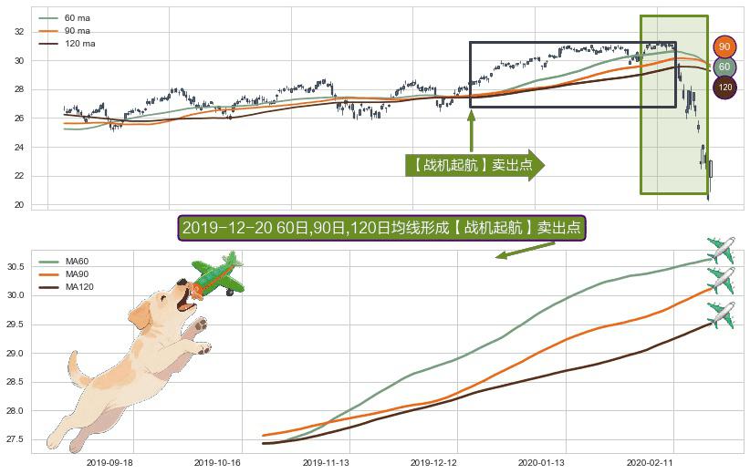 ⚀ 2019-10-22日-2020-02-21日显现 60日-90日-120日均线 【战机起航】卖出点 看空信号,后市看跌,卖出