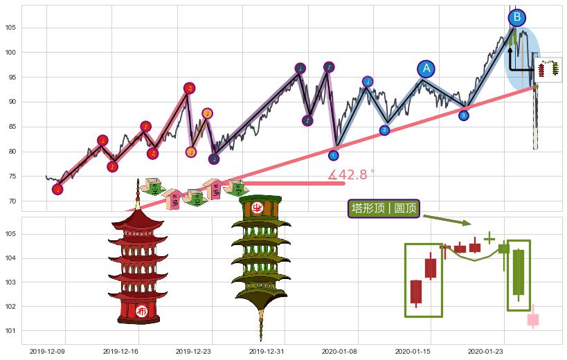 ➢ 收盘价(2020-01-09: 102.77 )→回踩→第一根k线低点(2019-12-27: 102.71 )