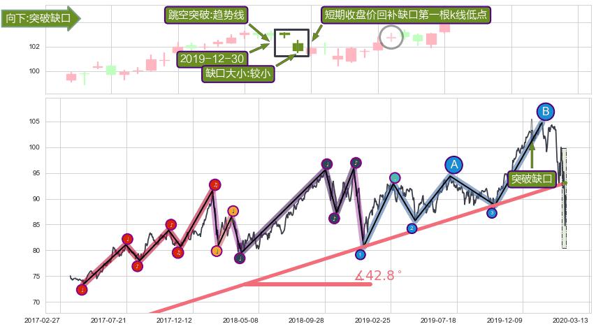 ➢ 最后的上涨趋势2017-04-18至2020-03-11:存在破位迹象,后续小调整或者反转下跌