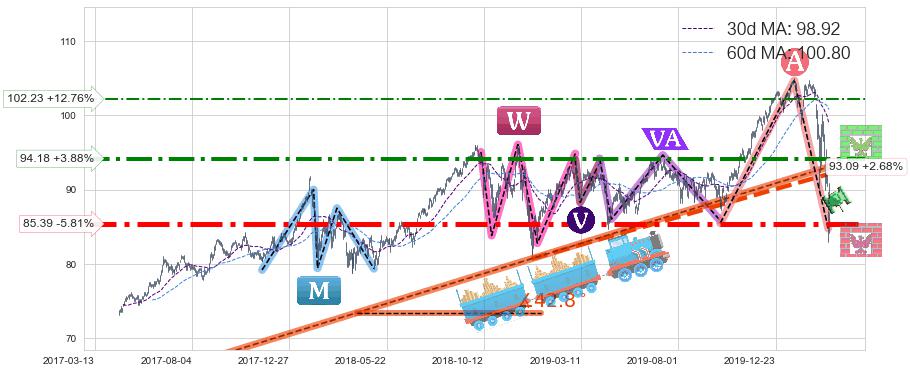 ♘ 阻力价格位102.23,可信任强度51.45%,距离最后交易2020-03-13形成的收盘价格90.66相差 +12.76%