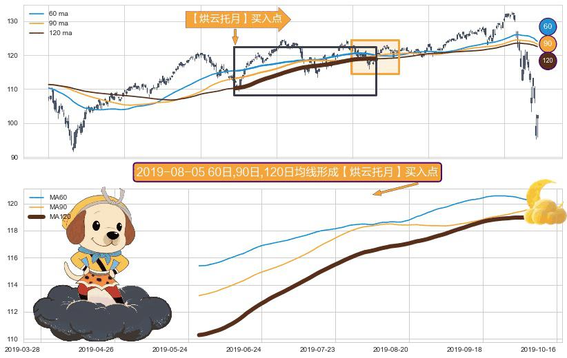 形态多维评估: ⚀ 2019-05-30日-2019-10-09日显现 60日-90日-120日均线 【烘云托月】买入点 看多信号,后市看涨,买入
