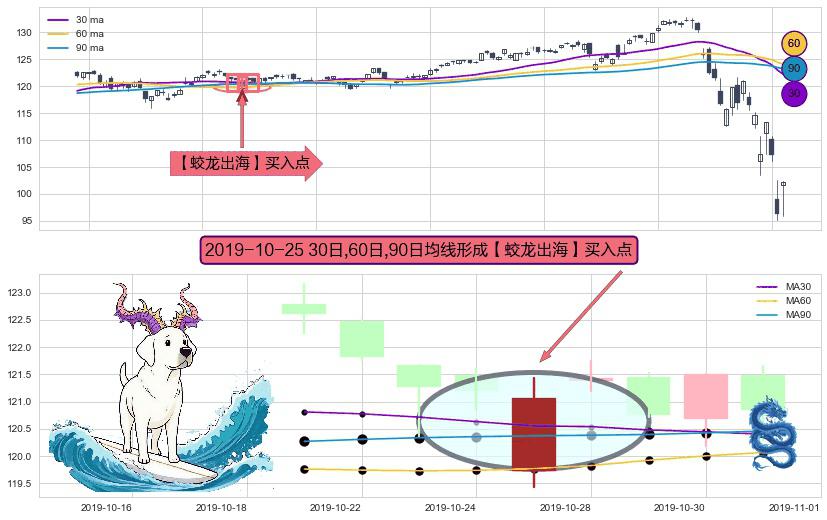 形态多维评估: ⚀ 2019-10-25日显现 30日-60日-90日均线 【蛟龙出海】买入点 看多信号,后市看涨,买入