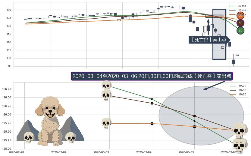 形态多维评估: ⚀ 2020-03-05-日至2020-03-06-日显现 20日-30日-60日均线 【死亡谷】卖出点 看空信号,后市看跌,卖出