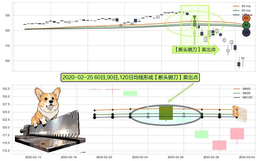 形态多维评估: ⚀ 2020-02-25日显现 60日-90日-120日均线 【断头铡刀】卖出点 看空信号,后市看跌,卖出