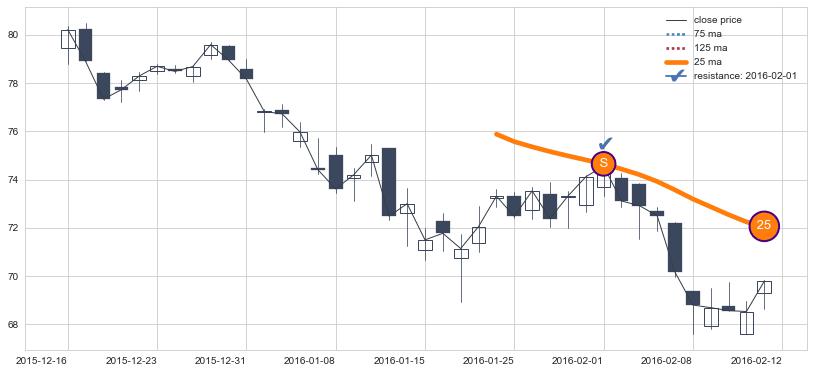下跌趋势2015-12-16-2016-02-12,均线25确认关键阻力1处
