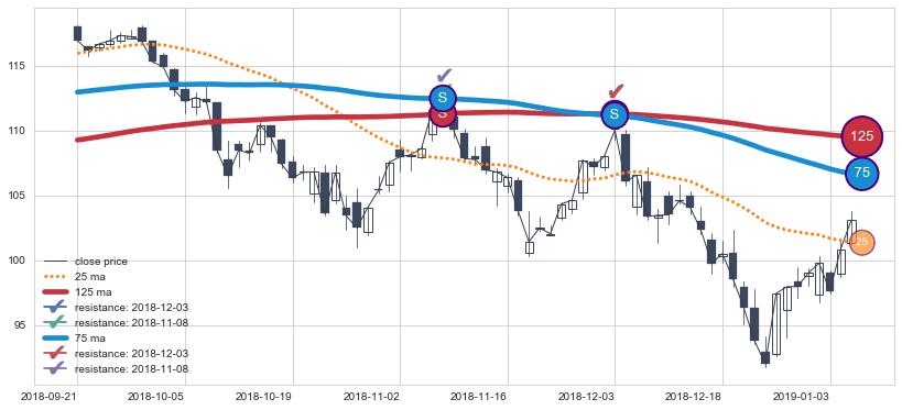 下跌趋势2018-09-21-2019-01-07,均线75, 125确认关键阻力2处
