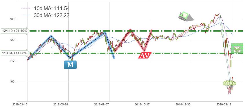 ♘ 阻力价格位124.19,可信任强度71.50%,距离最后交易2020-03-13形成的收盘价格102.30相差 +21.40%