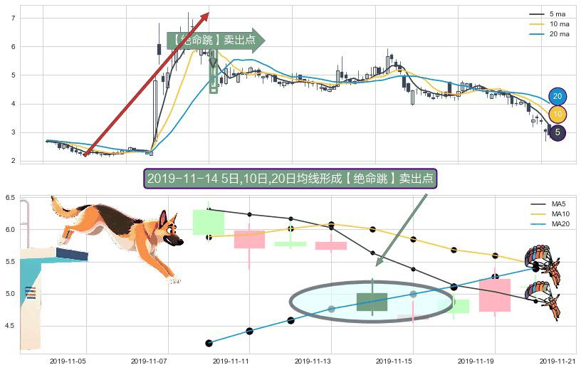 形态多维评估: ⚀ 2019-11-14日显现 5日-10日-20日均线 【绝命跳】卖出点 看空信号,后市看跌,卖出