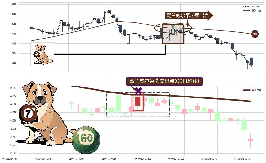 形态多维评估: ⚀ 2020-02-12-日显现 葛兰威尔均线 60日均线 第⑦卖出点 下降趋势的中继信号,后市看跌,卖出信号
