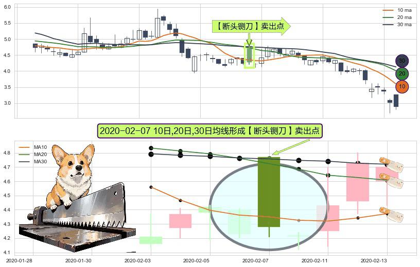 形态多维评估: ⚀ 2020-02-07日显现 10日-20日-30日均线 【断头铡刀】卖出点 看空信号,后市看跌,卖出