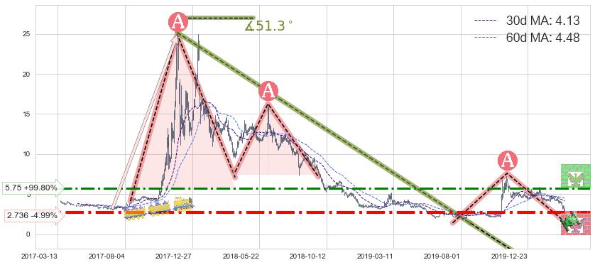 ♘ 支撑价格位2.736,可信任强度74.63%,距离最后交易2020-03-13形成的收盘价格2.880相差 -4.99%