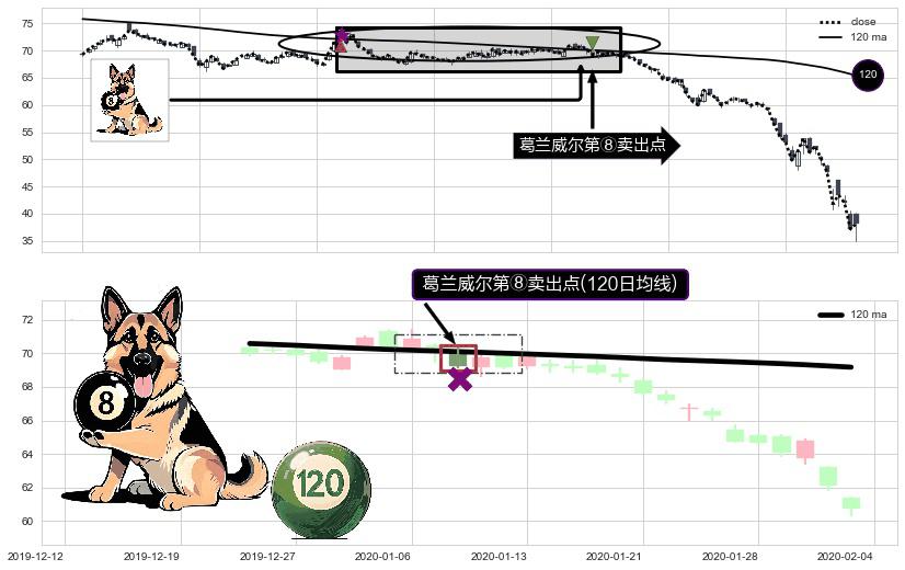 形态多维评估: ⚀ 2020-01-08-日显现 葛兰威尔均线 120日均线 第⑧卖出点 下降趋势的中继信号,后市看跌,卖出信号
