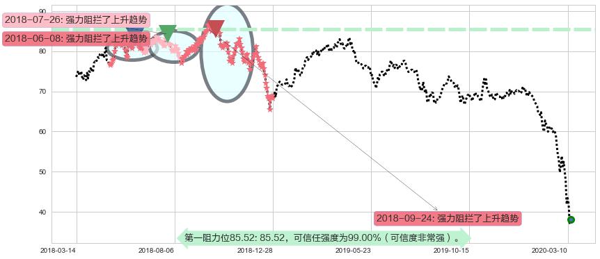 ♘ 阻力价格位85.52,可信任强度99.00%,距离最后交易2020-03-13形成的收盘价格38.12相差 +124.33%