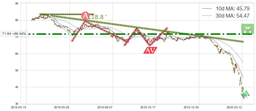 ♘ 阻力价格位71.84,可信任强度96.69%,距离最后交易2020-03-13形成的收盘价格38.12相差 +88.44%