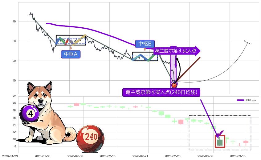 ➣ 【中枢B】:2019-10-08-2020-01-07,中枢由4笔构成,共63交易日, ZG=22.94, ZD=20.38
