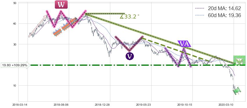 ♘ 阻力价格位19.80,可信任强度78.93%,距离最后交易2020-03-13形成的收盘价格9.46相差 +109.29%