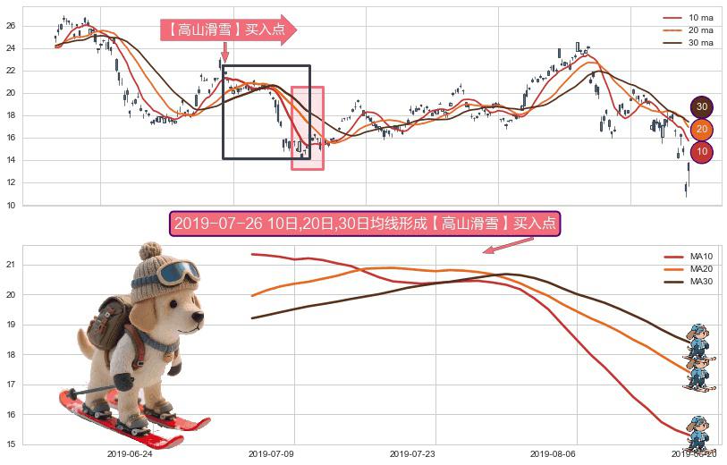 形态多维评估: ⚀ 2019-07-03日-2019-08-16日显现 10日-20日-30日均线 【高山滑雪】买入点 看多信号,后市看涨,买入