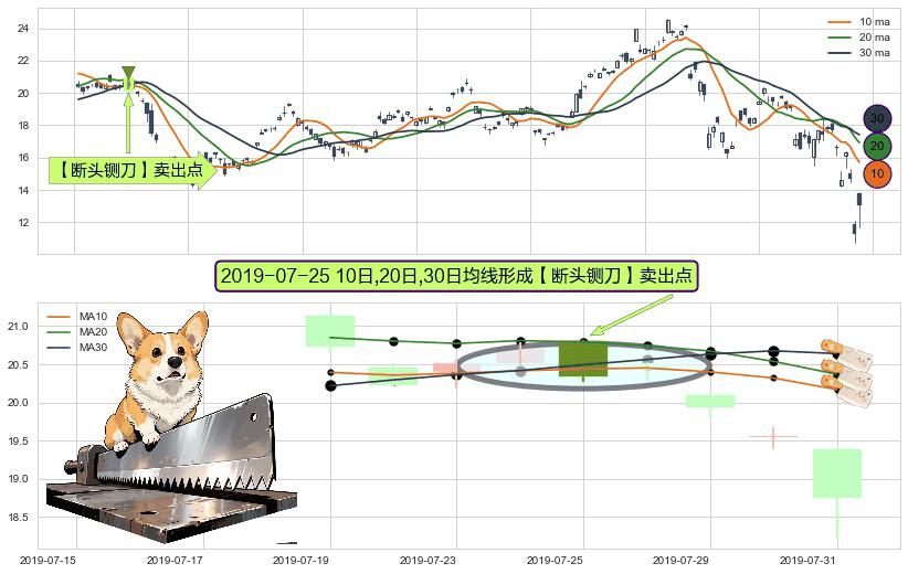 形态多维评估: ⚀ 2019-07-25日显现 10日-20日-30日均线 【断头铡刀】卖出点 看空信号,后市看跌,卖出