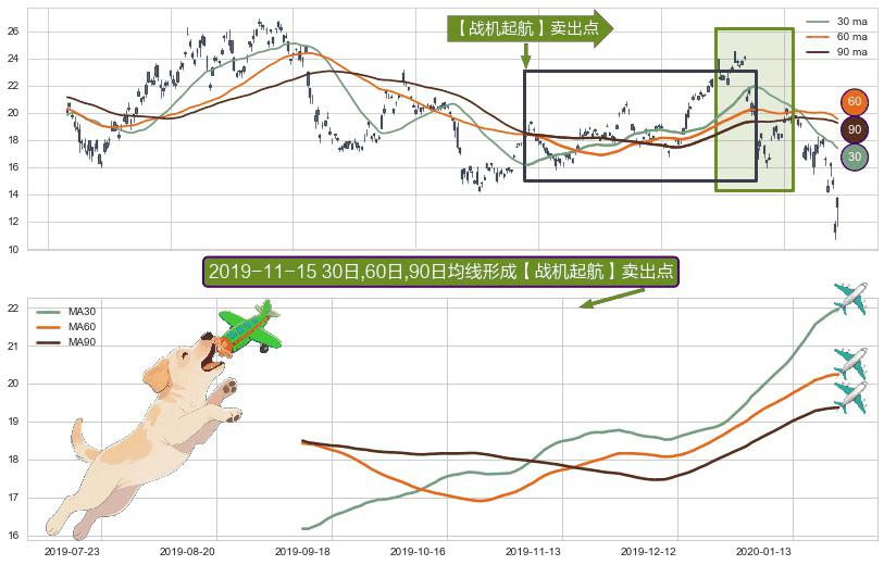 形态多维评估: ⚀ 2019-09-11日-2020-01-24日显现 30日-60日-90日均线 【战机起航】卖出点 看空信号,后市看跌,卖出