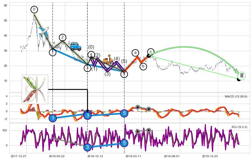 ➣ 第一, 三, 五浪下跌动能逐渐【衰弱变小】,趋势呈现不稳迹象