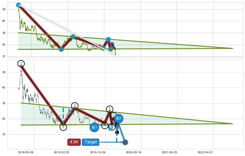➣ 【已确认突破】下降【对称】三角形整理 起点:2018-01-26,突破点:2020-03-09,形态共532交易日