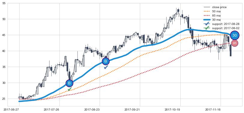 上涨趋势2017-06-27-2017-11-24,均线30确认关键支撑2处
