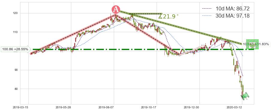 ♘ 阻力价格位100.86,可信任强度84.62%,距离最后交易2020-03-13形成的收盘价格78.46相差 +28.55%
