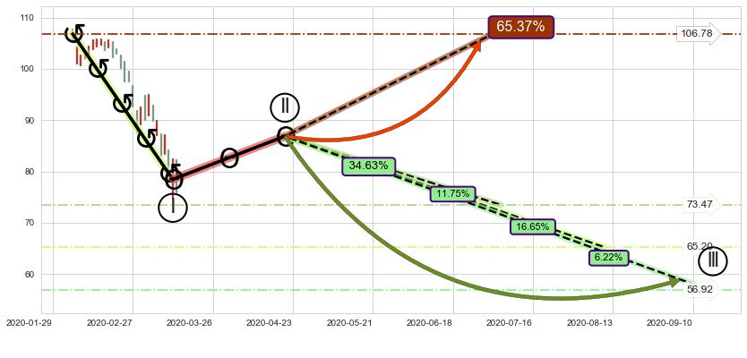 ➢ 循环浪继续向下【最高】位置(2020-07-06, 73.47),匹配聚类样本比例33.94%, 可能性概率11.75%