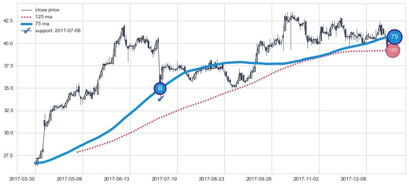 ⚃ 在破位点附近ma走势明显平稳迹象,稍后的走势中ma下垂迹象也出现,信号【可信度中等偏上】