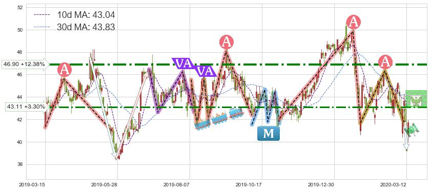 ♘ 阻力价格位46.90,可信任强度76.83%,距离最后交易2020-03-13形成的收盘价格41.73相差 +12.38%