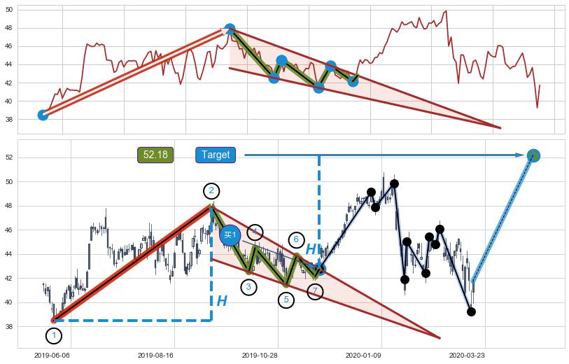 ➢ 最小中继整理涨幅→𝐇: 9.42 (𝐇楔型旗杆的长度:楔型起点→顶点)