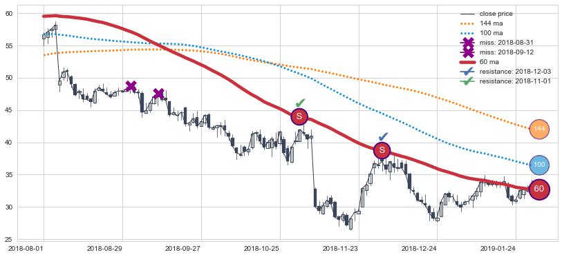 2. 144日均线确认关键支撑: 2018-04-19