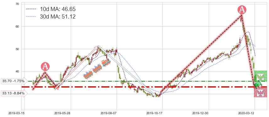 ♘ 阻力价格位35.70,可信任强度52.74%,距离最后交易2020-03-13形成的收盘价格36.34相差 -1.75%