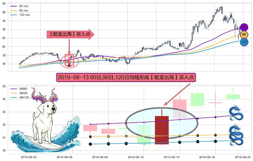 ⚀ 2019-08-13日显现 60日-90日-120日均线 【蛟龙出海】买入点 看多信号,后市看涨,买入