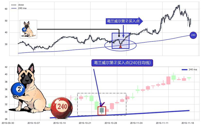 ⚀ 2019-10-23-日显现 葛兰威尔均线 240日均线 第②买入点 上升趋势的中继信号,后市看涨,买进信号