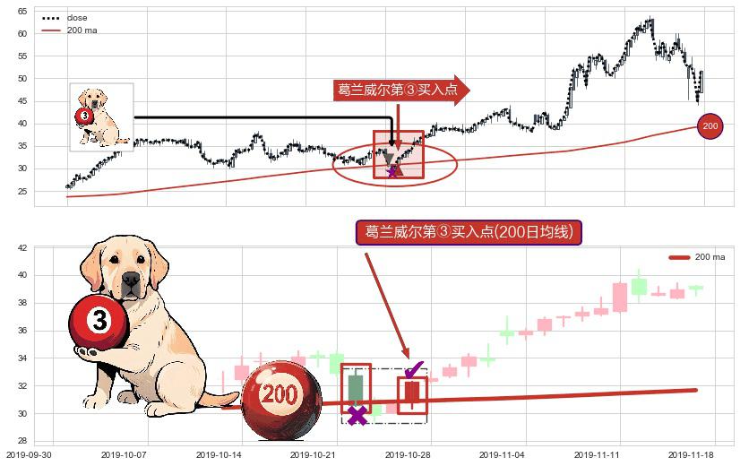 ⚀ 2019-10-25-日显现 葛兰威尔均线 200日均线 第③买入点 上升趋势的中继信号,后市看涨,买进信号
