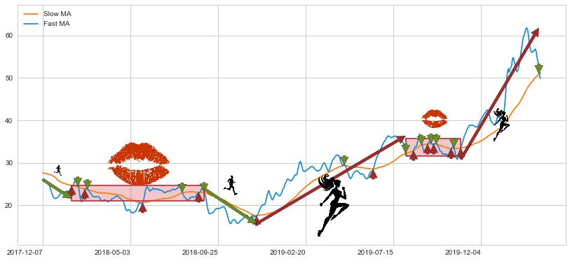 2018-08-31至2018-11-27 慢线与快线呈空头排列, 慢线与快线接触少,无缠绕