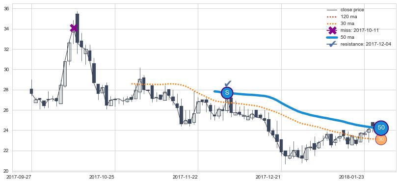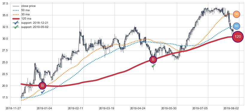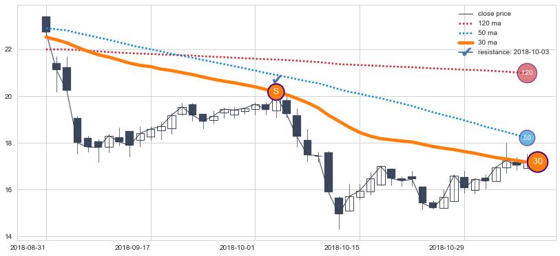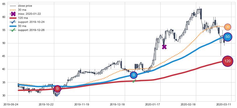 ⚅ 短期均线MA30上穿中期均线MA90形成的交叉是标准 黄金交叉