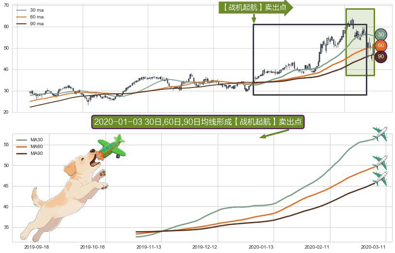 ⚀ 2019-10-31日-2020-03-05日显现 30日-60日-90日均线 【战机起航】卖出点 看空信号,后市看跌,卖出