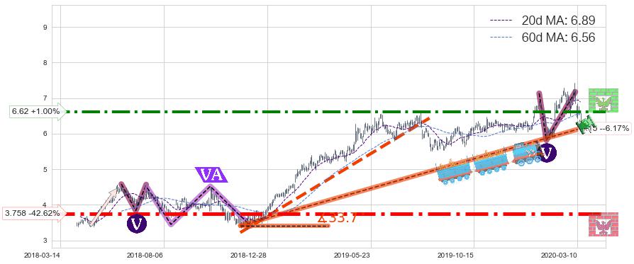 ♘ 支撑价格位3.758,可信任强度86.33%,距离最后交易2020-03-13形成的收盘价格6.55相差 -42.62%