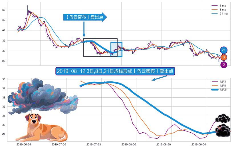 形态多维评估: ⚀ 2019-07-15日-2019-09-10日显现 3日-8日-21日均线 【乌云密布】卖出点 看空信号,后市看跌,卖出