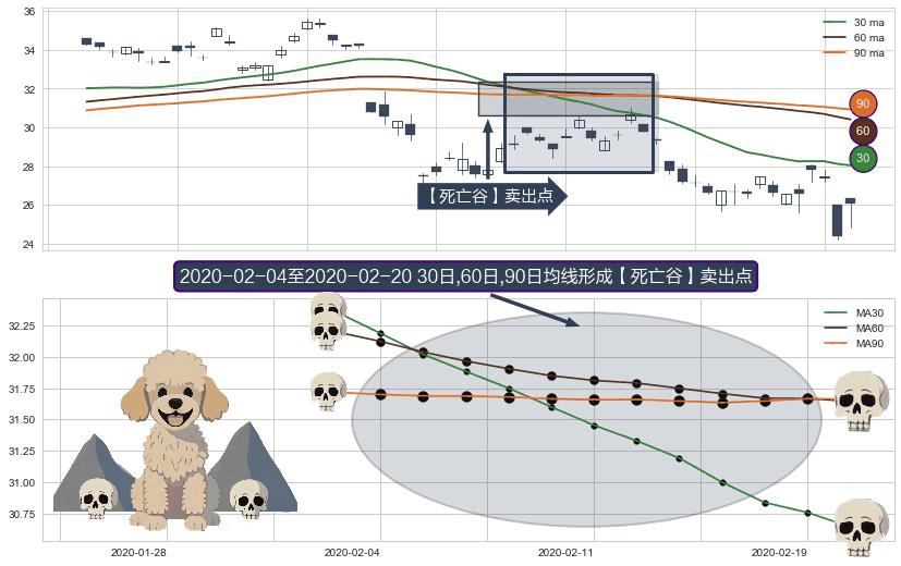 形态多维评估: ⚀ 2020-02-05-日至2020-02-20-日显现 30日-60日-90日均线 【死亡谷】卖出点 看空信号,后市看跌,卖出
