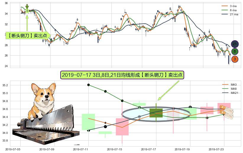 形态多维评估: ⚀ 2019-07-17日显现 3日-8日-21日均线 【断头铡刀】卖出点 看空信号,后市看跌,卖出