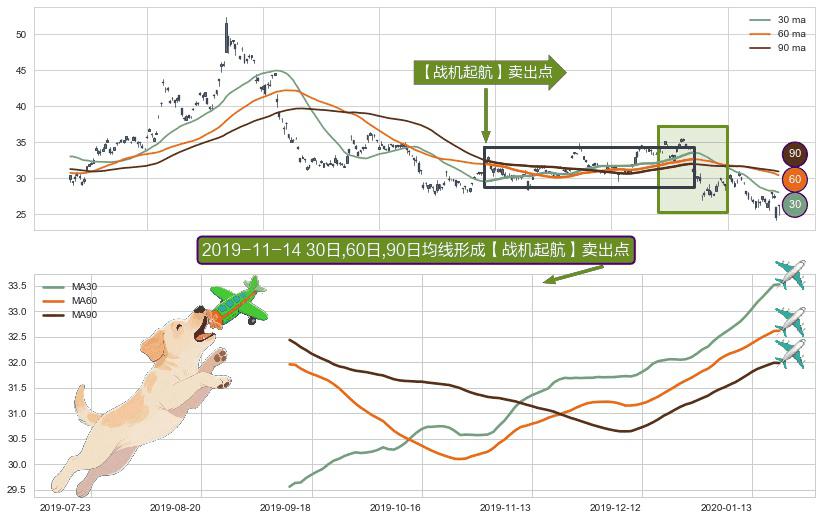 形态多维评估: ⚀ 2019-09-12日-2020-01-21日显现 30日-60日-90日均线 【战机起航】卖出点 看空信号,后市看跌,卖出