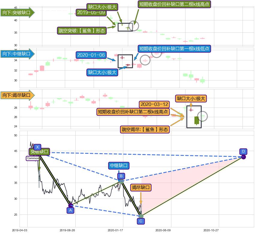 ➢ (Common ⥥ 【鲨鱼】形态) 🔜 竭尽缺口 🔜 中继缺口 🔜 突破缺口 综合量化分数:63.59 【偏多】