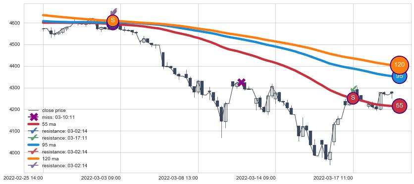 ➣ 70小时均线于(07-14 13:00: 4322.72)形成【死叉】基于【死叉历史模型】预测死叉后最低波谷价格: 4118.98, 死叉后最低价格4067.16,已经下跌超出预测最低波谷价格, 预期反弹