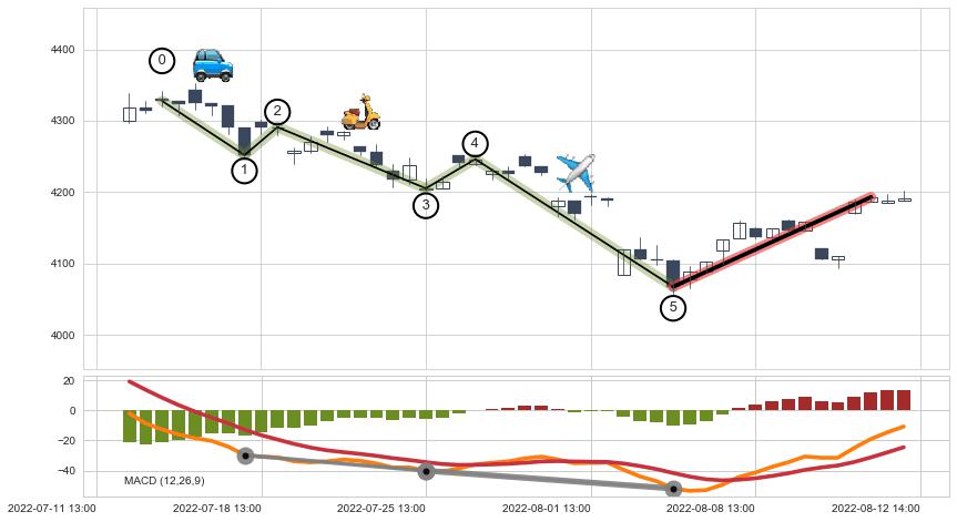 ➢ 最后的下跌趋势2022-06-30 13:00至2022-08-11 13:00:存在突破迹象,后续小反弹或者反转上涨