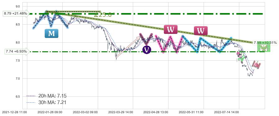 ♞ 20小时均线:7.15,30小时均线:7.21→ 快线<慢线