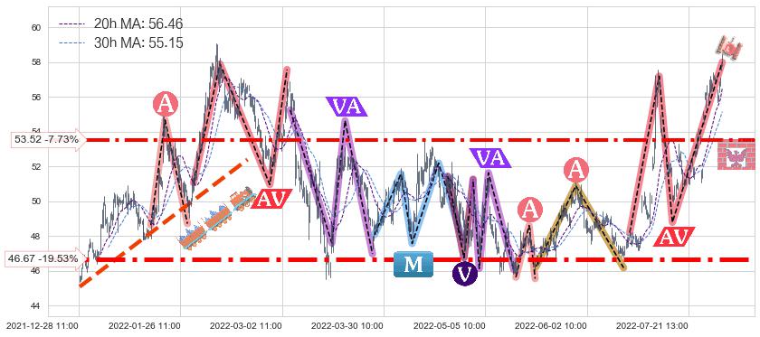 ♘ 支撑价格位53.52,可信任强度81.21%,距离最后交易2022-08-12 14:00形成的收盘价格58.00相差 -7.73%