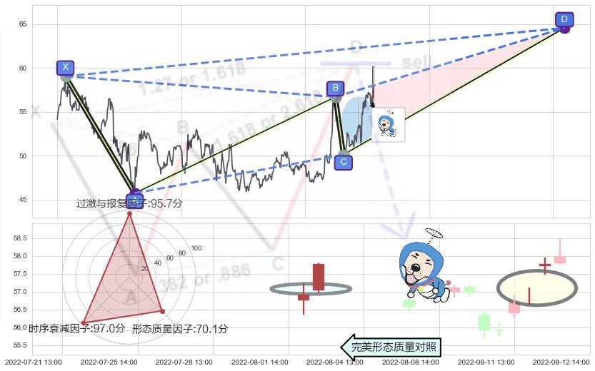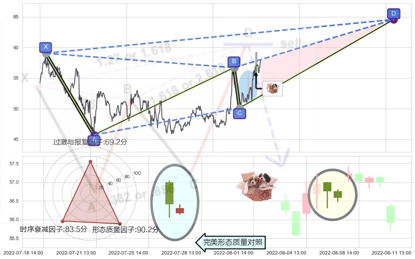 ➢ 看涨(低位)倒锤头线 🔜 谐波蝴蝶c拐点上涨支撑 综合量化分数:54.98 【偏多】